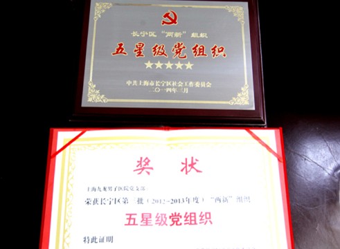 这是上海九龙男子医院获得的“五星级党支部”铭牌和奖状。